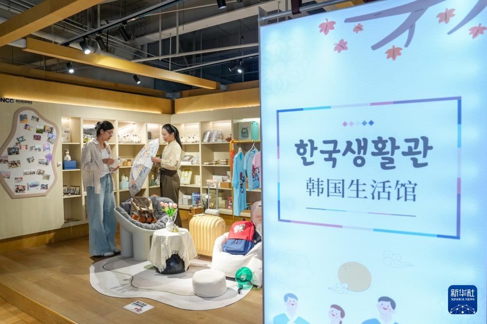 游客在盐城市韩国生活博物馆的中韩文化生活中心选购商品(10月16日摄)。