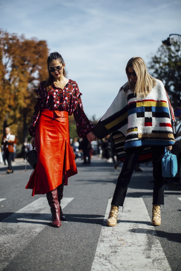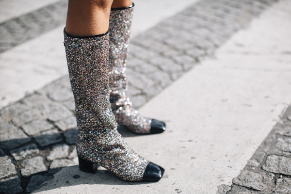 具有未来感的银色和金属元素广泛运用,比如Chanel的火箭包包和因素及膝靴,可是2018年春夏时装周街拍中最为抢眼的单品。